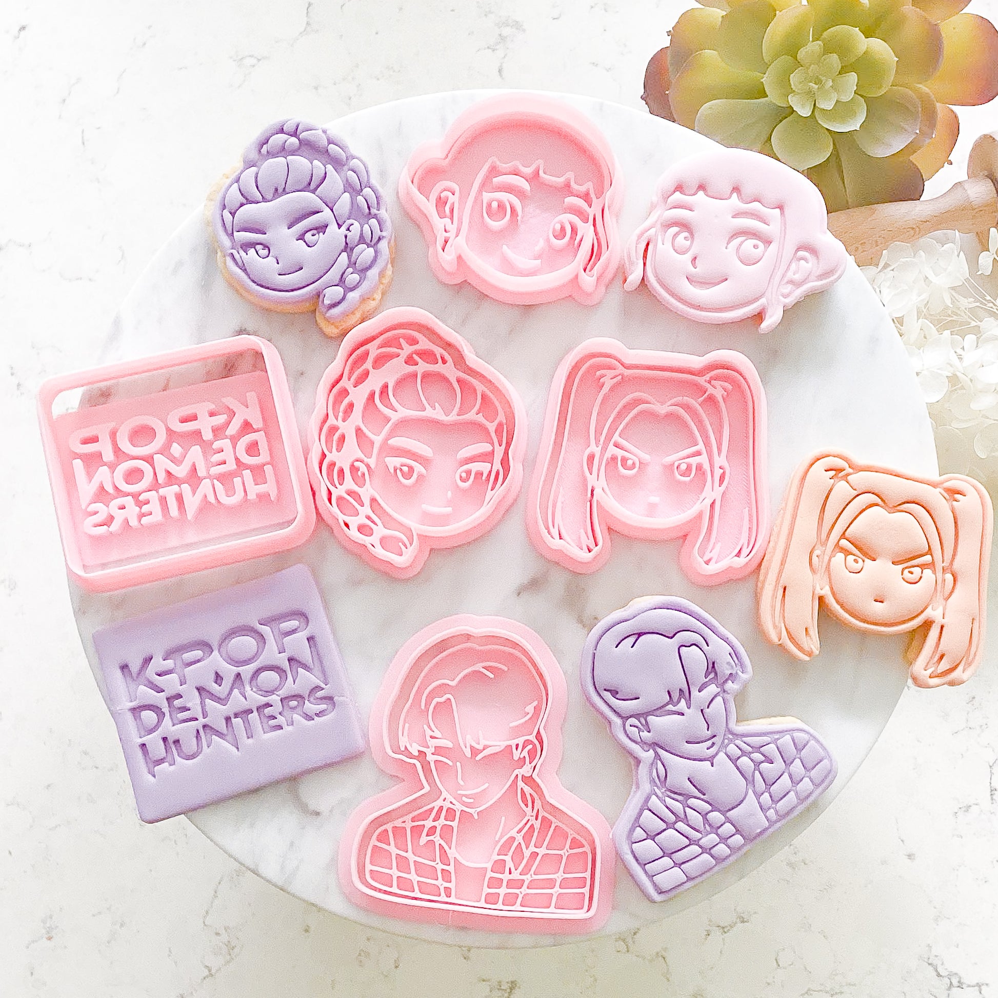 Bring the heat to your baking with the ultimate Kpop cookie cutter bundle! This 6-piece set features the fierce and fabulous trio from HUNTR/X—Rumi, Mira, and Zoey—plus the striking Kpop Demon Hunters logo and fan-favourite Jinu from Saja Boys. It’s the perfect fusion of style, fandom, and sweet creativity.
