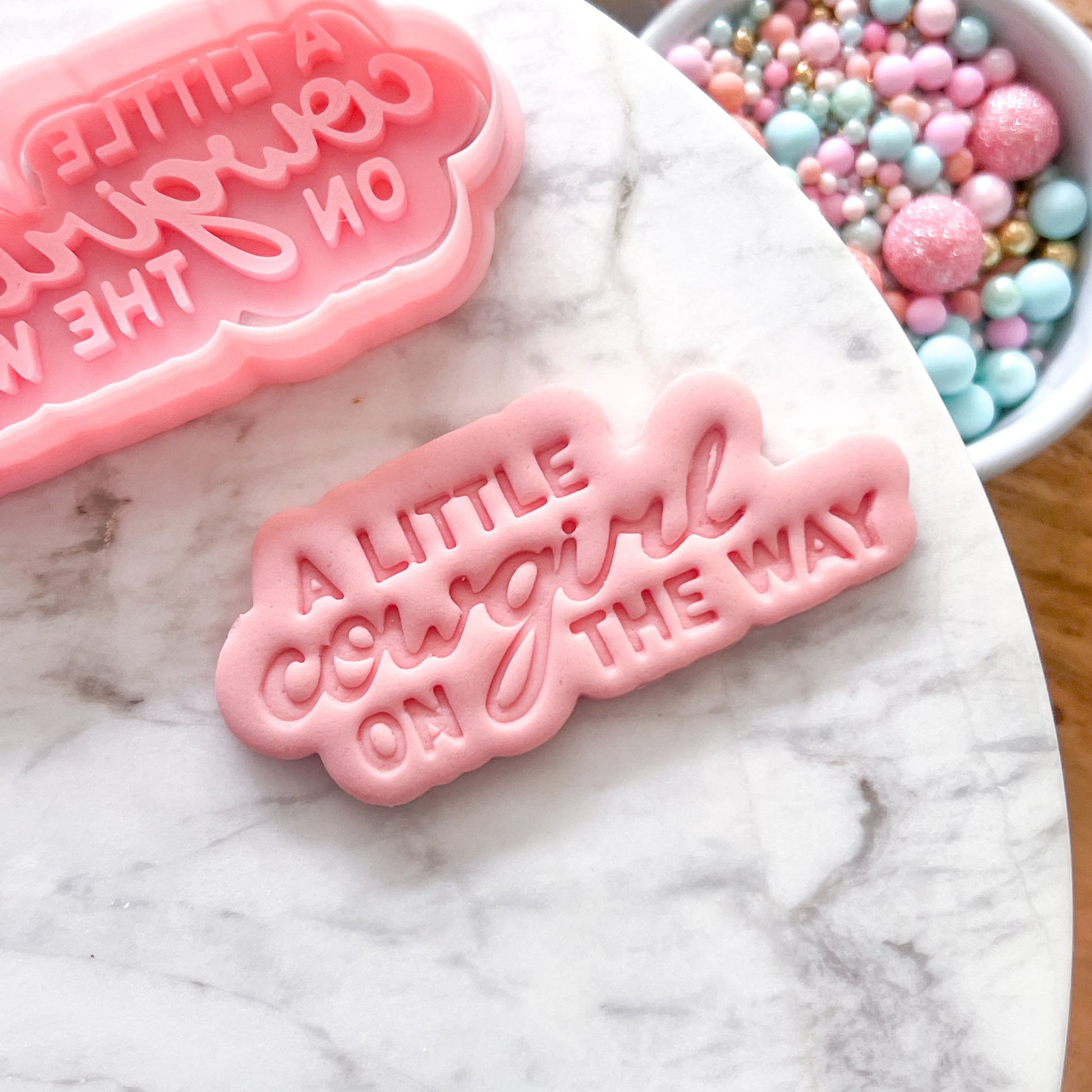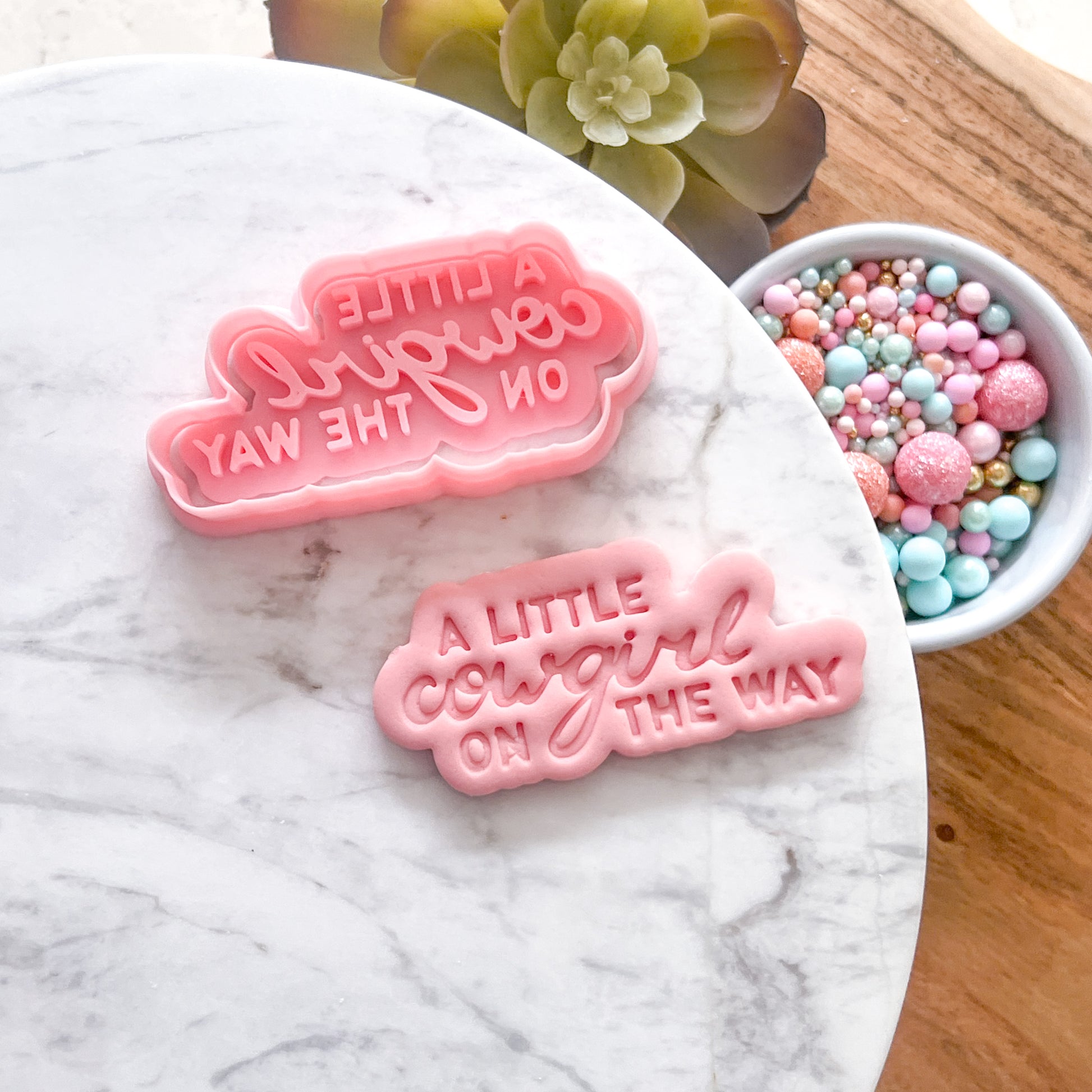 Welcome a little one with sweet, homemade cookies. Our "Little Cowgirl" - Cookie Cutter & Stamp Set" cookie cutter and stamp set makes it super simple to create cookies or fondant toppers with clean edges and easy decorating. Great for party platters, favour bags, and quick bakes with the kids.