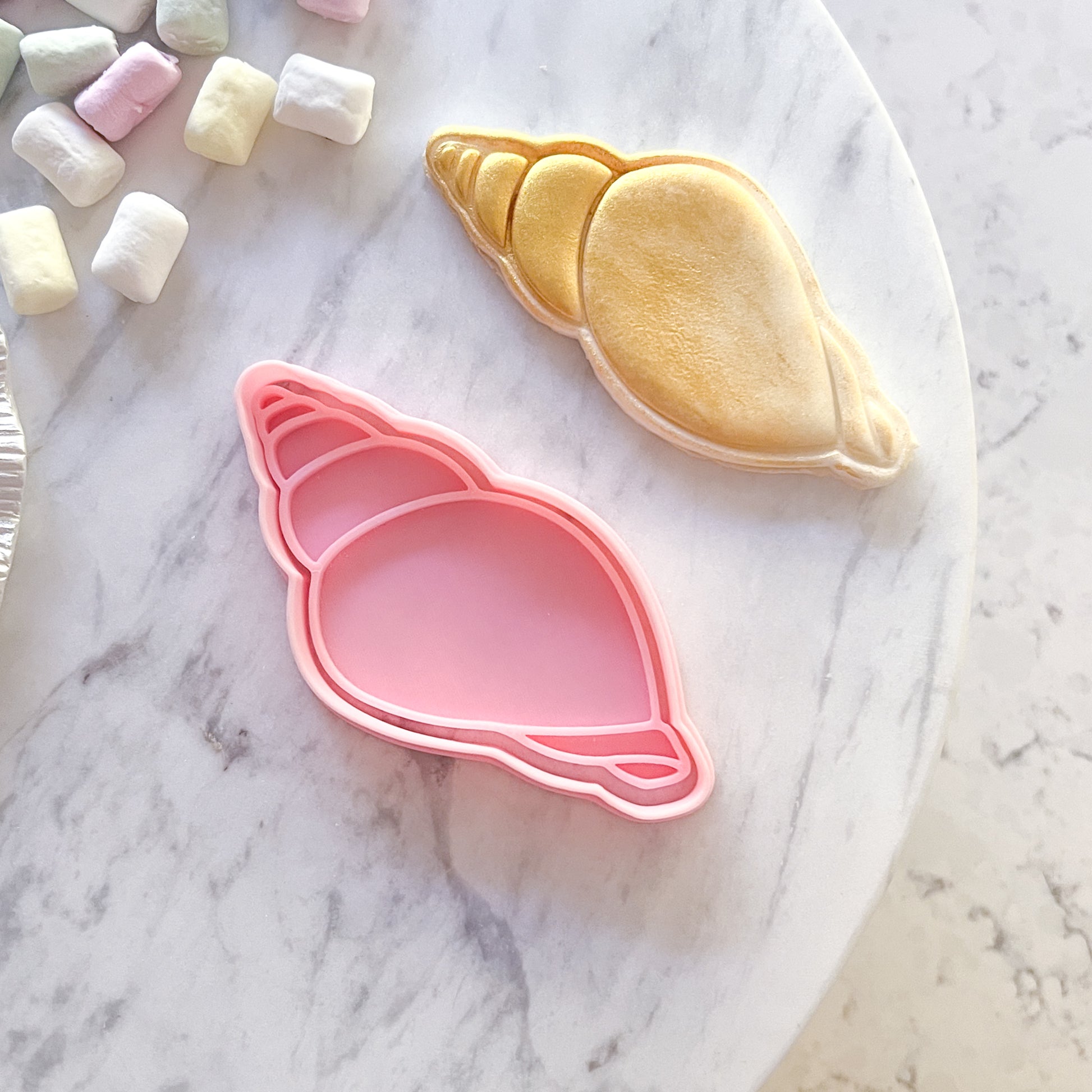 Create a themed cookie moment for parties, gifts, and bake sales. Our "Shell #3" Cookie Cutter & Stamp" cookie cutter and stamp set makes it super simple to create cookies or fondant toppers with clean edges and easy decorating. Great for party platters, favour bags, and quick bakes with the kids.